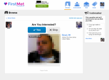 It's easy to see that user interests are important to Firstmet. In fact, the entire right half of a person's profile is dedicated to interests. Instead of writing down your interests, you can choose from a long list of books, movies, activities, music and other points of interest. These become keywords by which other users can find you and connect with you.